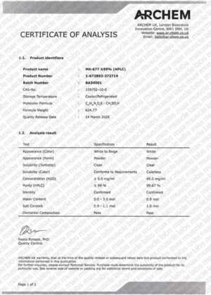 ⚠ Important Note: This product is supplied strictly for laboratory research use only. It is not approved for human consumption or therapeutic use. Not intended to diagnose, treat, cure, or prevent any disease.