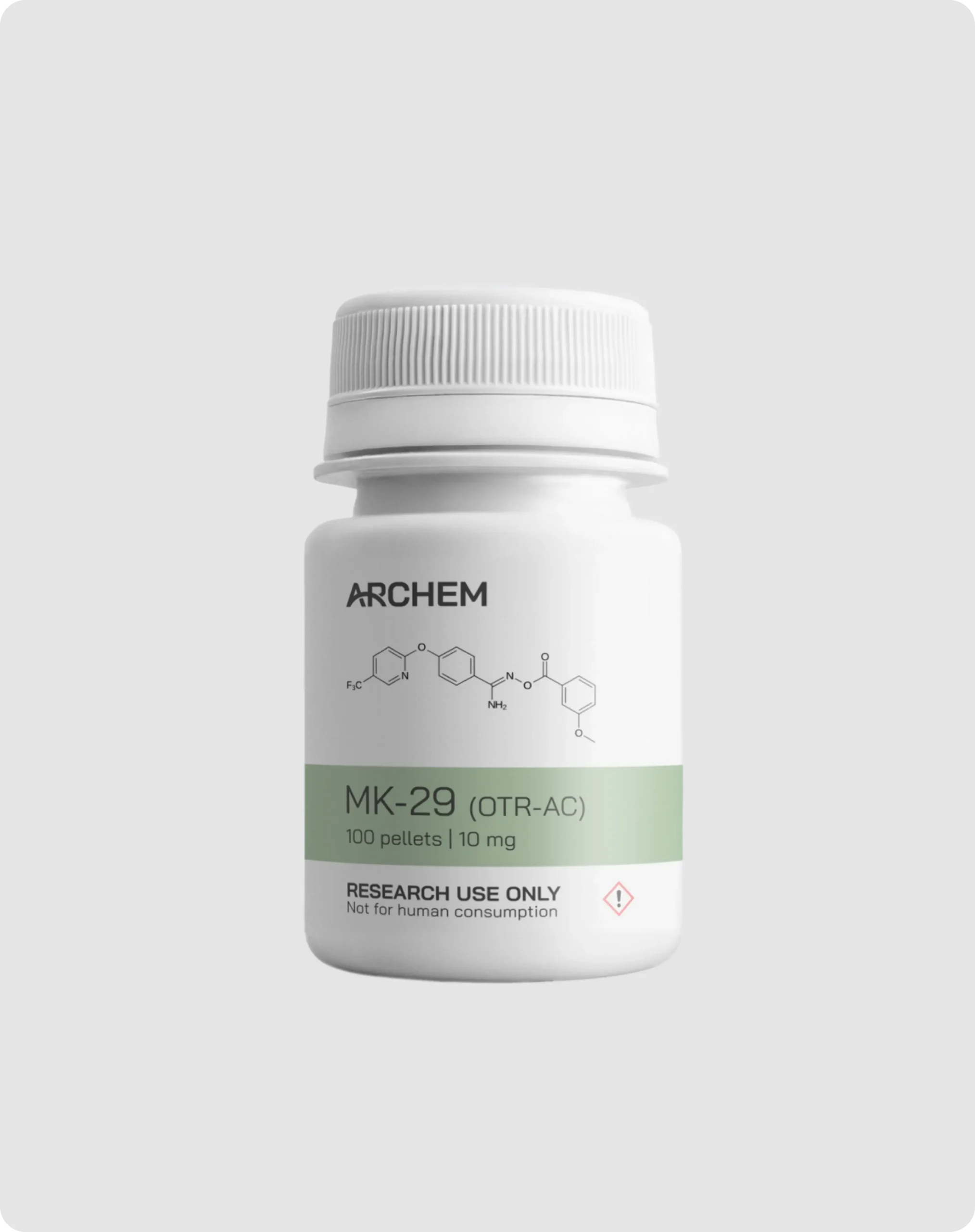 MK-29 retains the selective androgen receptor binding properties of Ostarine, acting as a non-steroidal SARM that promotes anabolic activity in muscle and bone, while minimizing androgenic effects in reproductive tissues. The esterification with an acetate group functions as a prodrug mechanism, gradually releasing the active MK-2866 after administration.