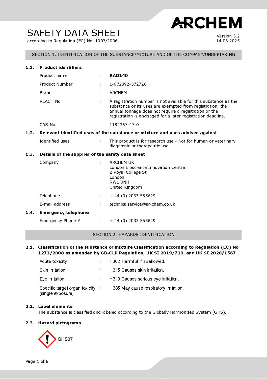 ⚠ Important Note: This product is supplied strictly for laboratory research use only. It is not approved for human consumption or therapeutic use. Not intended to diagnose, treat, cure, or prevent any disease.